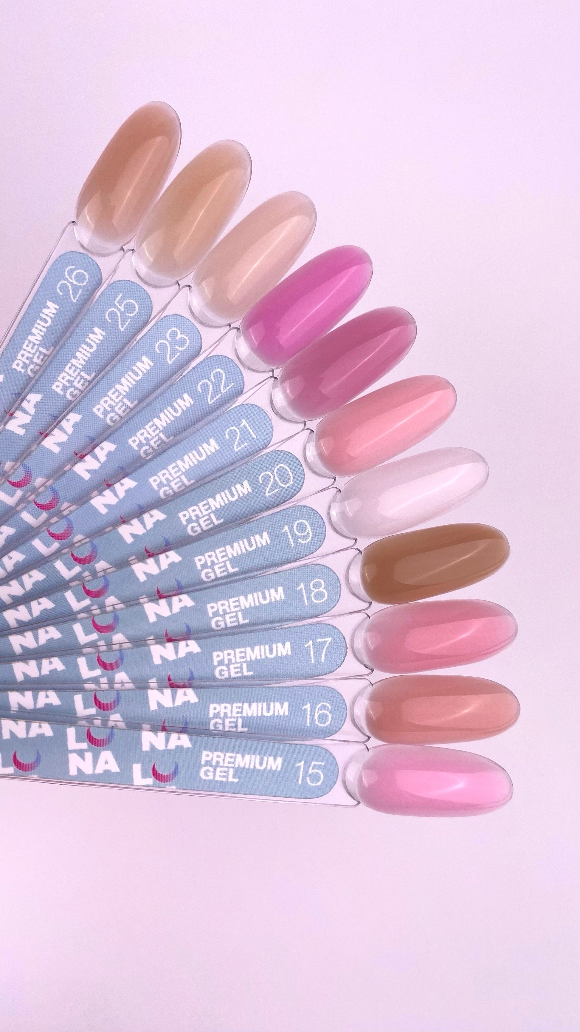 Kann zusätzlich erwärmt werden, um das Gel zu verdünnen. Härter als 1 mm dick. Bei einer Dicke unter 1 mm kann es sich leicht biegen, was die Haltbarkeit jedoch nicht beeinträchtigt. Schrumpft nicht und hält die Nagelform gut. Benötigt einen Rubber Base-Untergrund.
